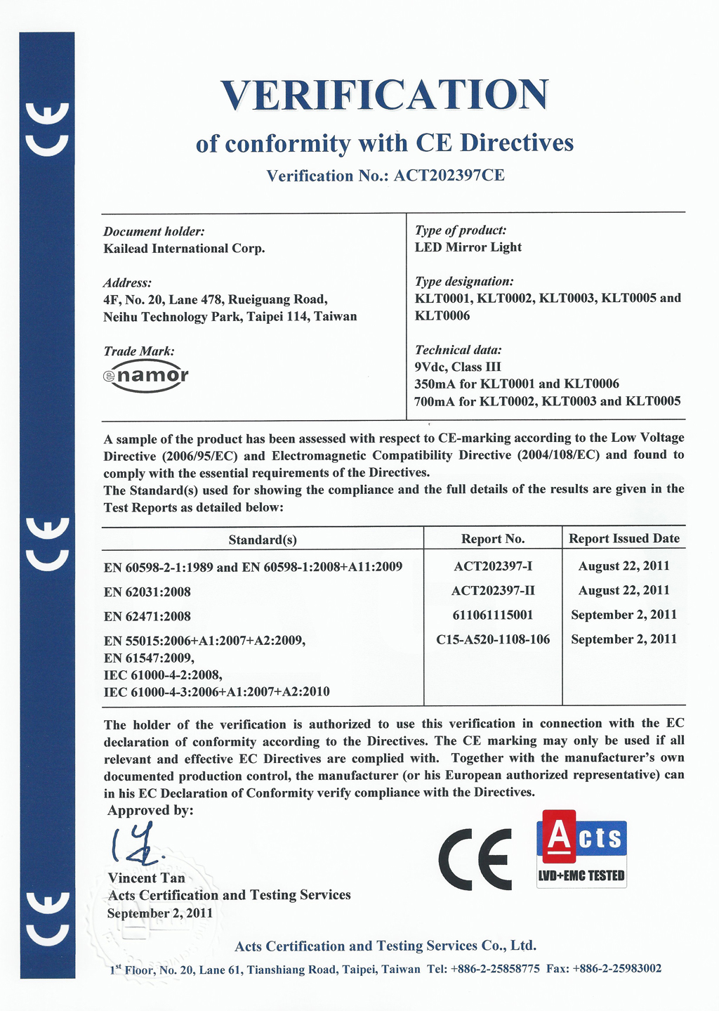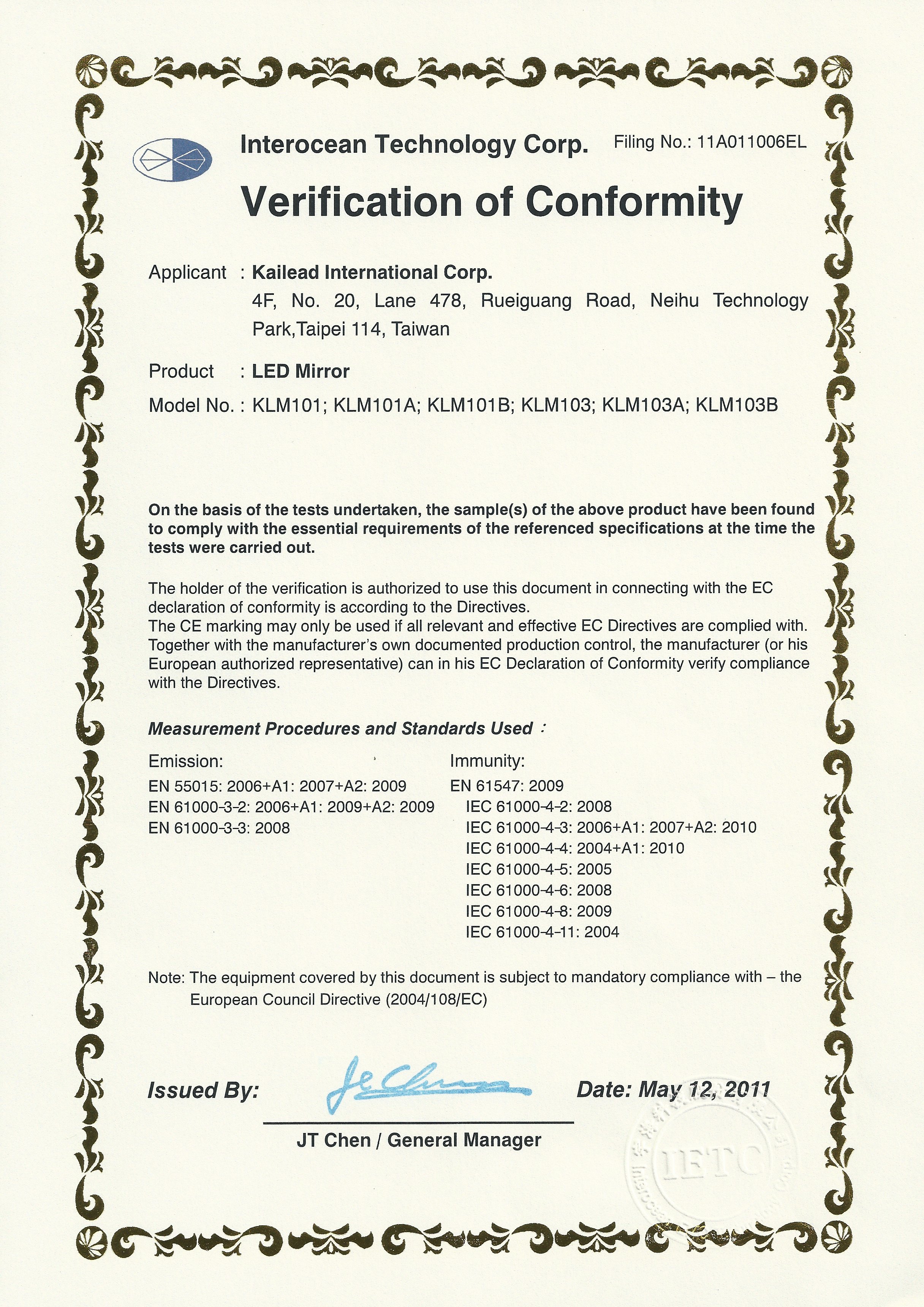 | CE 認證 KLM101AB-103AB | CE認證 KLT |