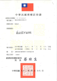 | 產品專利證書 | 商標專利 Kaitrum_2 |