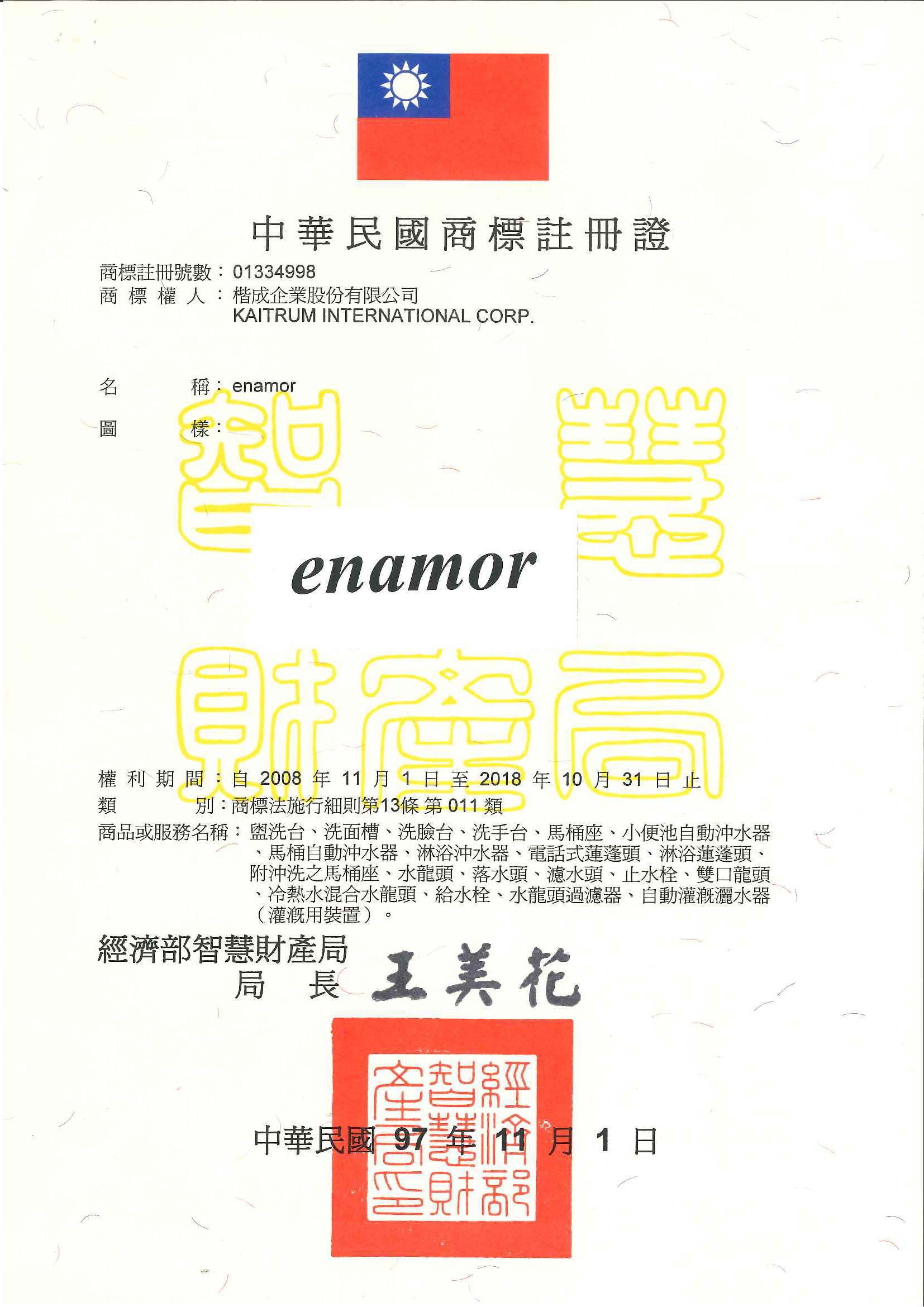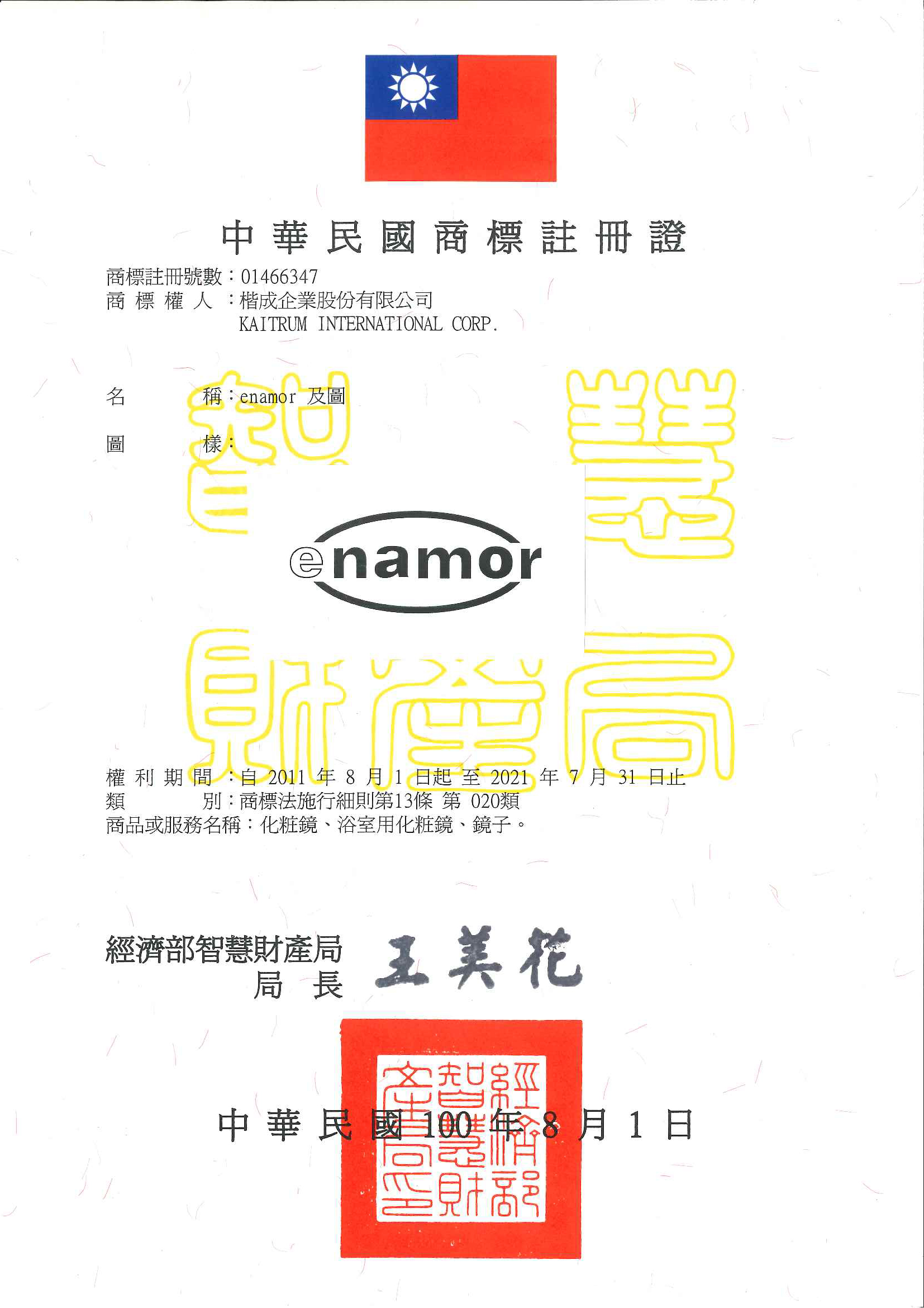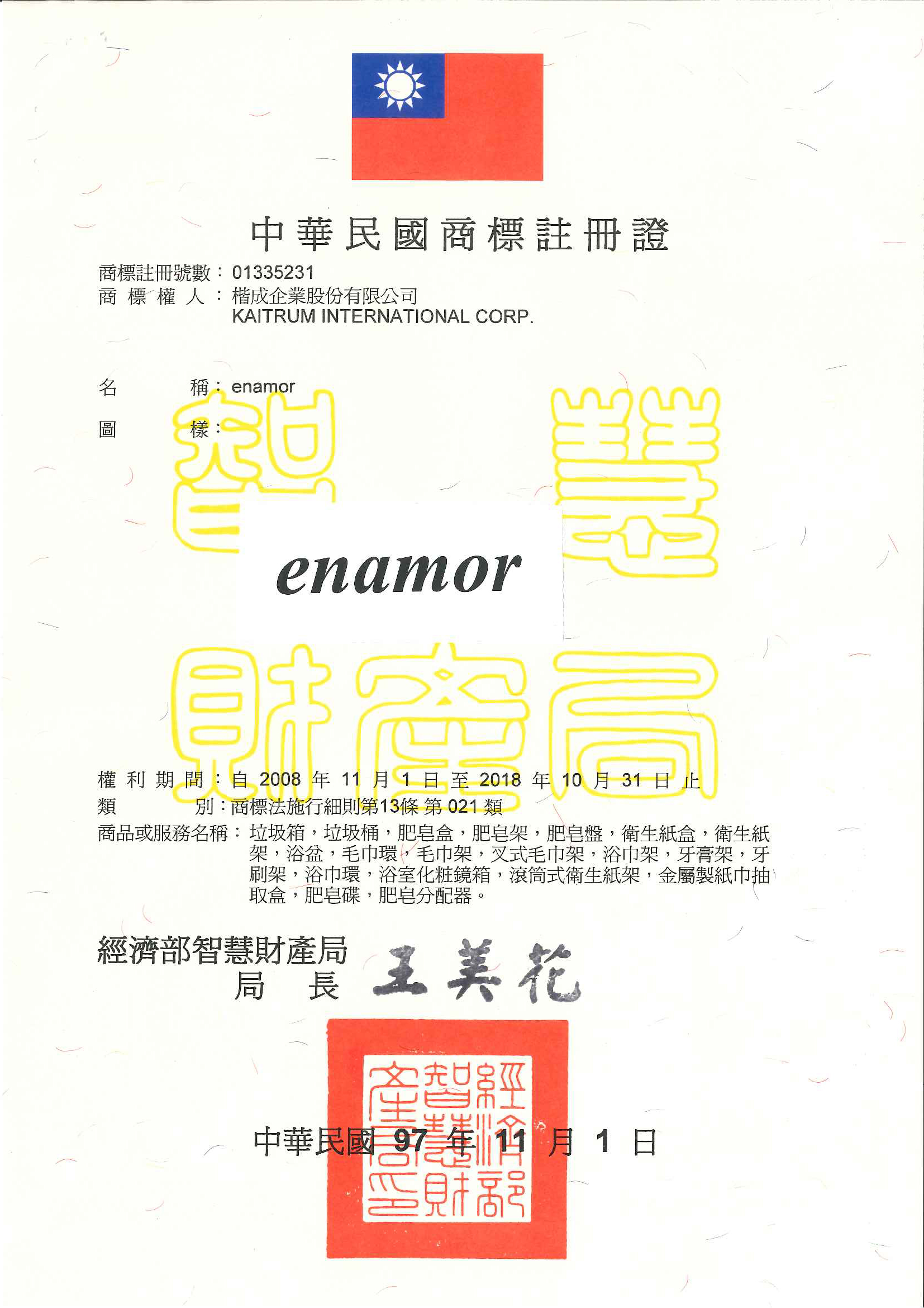| 商標專利 enamor_1 | 商標專利 enamor_2 | 商標專利 enamor_3 | 商標專利 Kaitrum_1 |