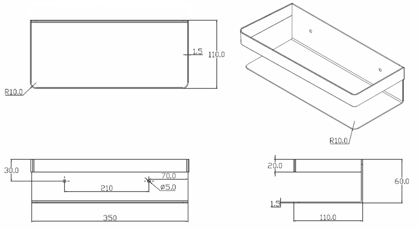 尺寸:13.78" x 4.33" x 2.36" / 350 x 110 x 60 mm