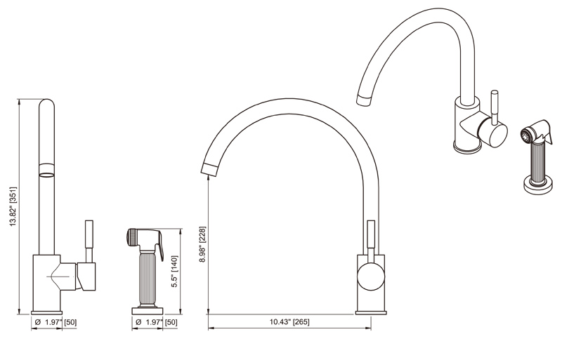 尺寸:(整體高度)351 mm /(噴嘴高度)228 mm /(噴嘴長度)265 mm