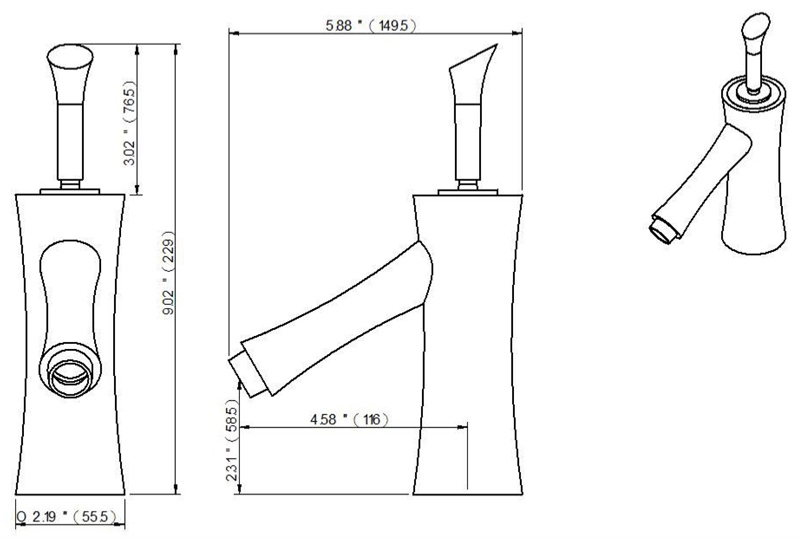尺寸:(整個高度)229 mm /(噴嘴高度)58.5 mm /(噴嘴長度)116 mm