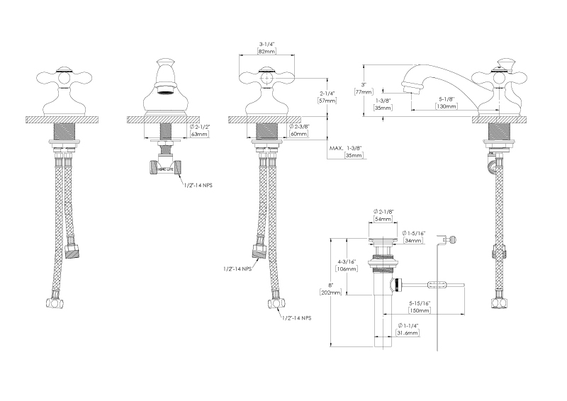 優質:我們的浴室水龍頭符合 cUPC 認證要求,追求安全的環境。三孔通用水龍頭採用實心黃銅主體和陶瓷盤閥製成,具有防漏和堅固的性能。 陶瓷盤閥可確保終生順暢且無滴漏。