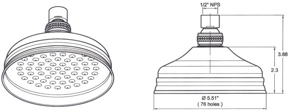 尺寸:6" x 3.27 x 76 噴水孔