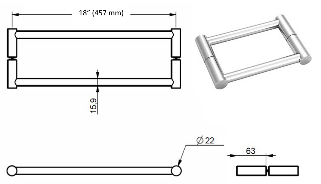 Ø 22 x 63 x 457 mm