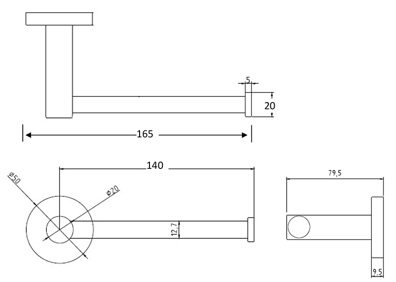 單支架衛條 尺寸:80 x 165 x 50 mm (Ø 12.7 x 0.5t mm) 材質:銅 + 不鏽鋼 表面處理:亮鉻 / 沙丁鎳