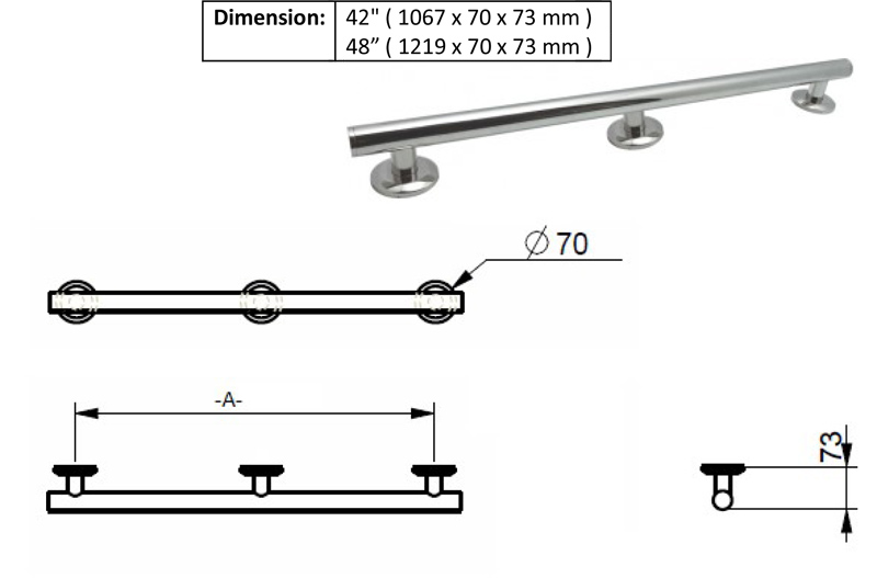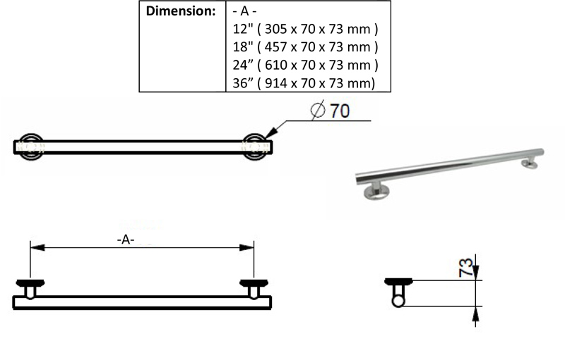 12" / 16" / 18" / 24" / 36" 不鏽鋼扶手 尺寸:12" / 16" / 18" / 24" / 36" 材質:不鏽鋼 顏色:亮面抛光