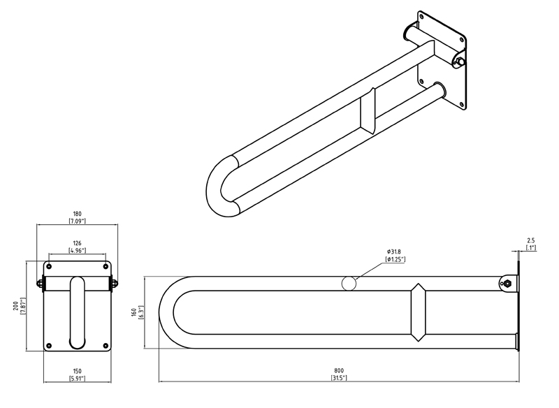 尺寸:31.5" x 7.1" x 7.9" / 800 mm x 180 mm x 200 mm