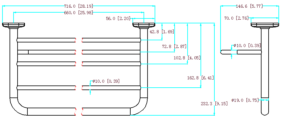 716 mm x 146.6 mm x 232.3 mm