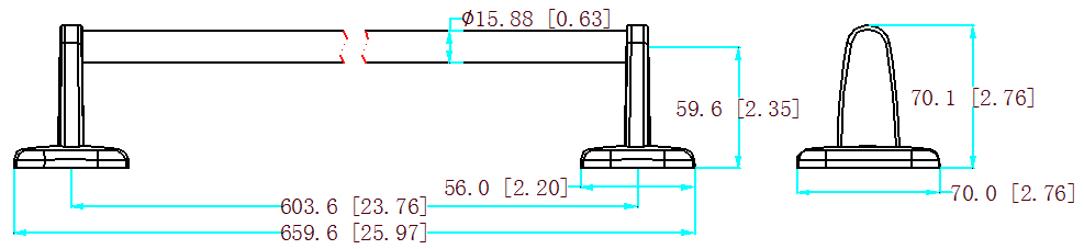 尺寸: 18" = 20" x 2.8" x 2.8" / 507.2 mm x 70 mm x 70.1 mm 24" = 26" x 2.8" x 2.8" / 659.6 mm x 70 mm x 70.1 mm 30" = 32" x 2.8" x 2.8" / 812 mm x 70 mm x 70.1 mm