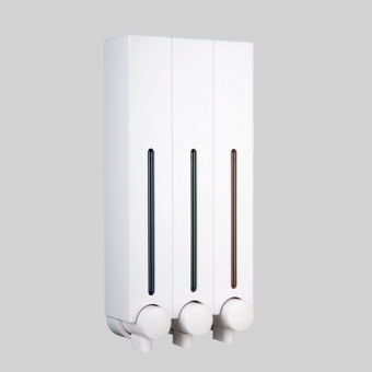 尺寸:12.6" x 5.9" x 2.6" / 320 mm x 150 mm x 65 mm 材質:塑料 ABS + PP 顏色:白色 / 鍍鉻 / 深灰 / 烤漆亮銀色 / 奶茶 容量:500ml x 3 瓶