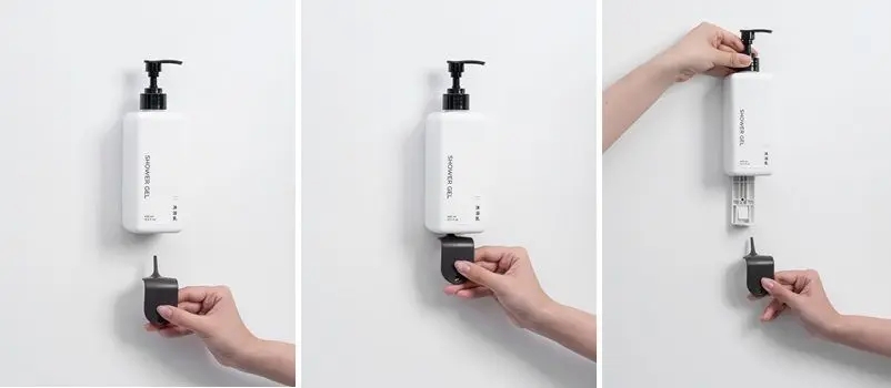 ▲ 卡: 瓶身背面凹槽卡入牆上背板