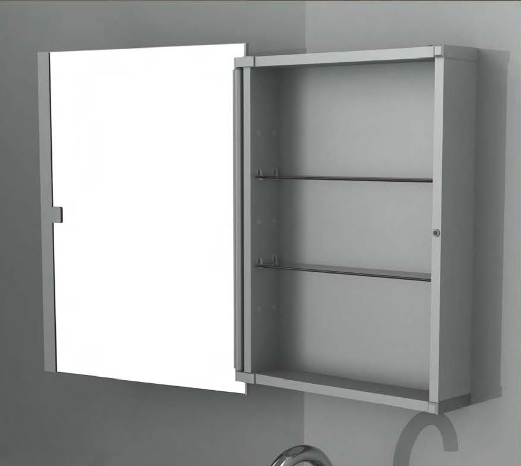 尺寸:長 x 寬 x 高 450 mm x 100 mm x 600 mm / 17.7" x 4" x 23.6" 顏色:陽極氧化鋁外殼 單面鏡門(3 mm+3 mm) 鏡門打開方向:右開或左開 2可調節擱板(鋼化玻璃厚度為4mm)