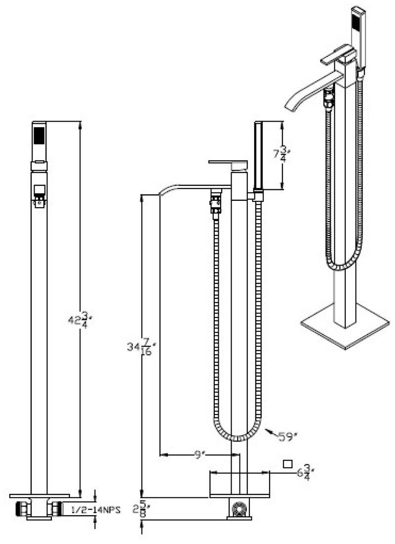 尺寸:(總高度)1085 mm / (噴嘴高度甲板)874.7 mm / (噴嘴長度)228.6 mm