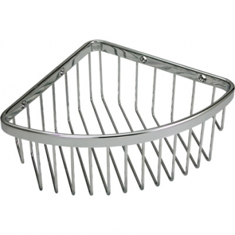 This polished chrome wire corner shower basket offers a practical storage solution for shampoo bottles, shower gels and toiletries. Made from high quality solid brass, the basket has an eye catching chrome finish. Supplied with wall fixings.