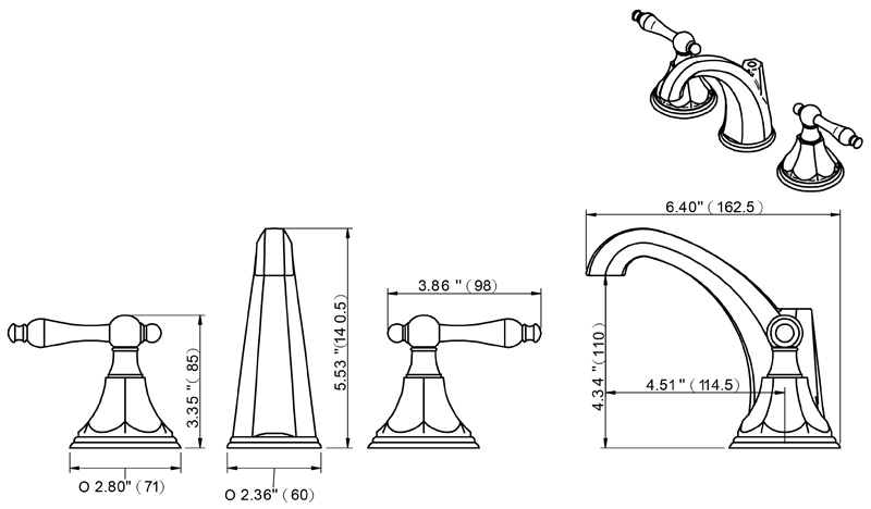 Dimension : (Over All Height)140.5 mm / (Spout Height Deck)110 mm / (Spout Length)114.5 mm