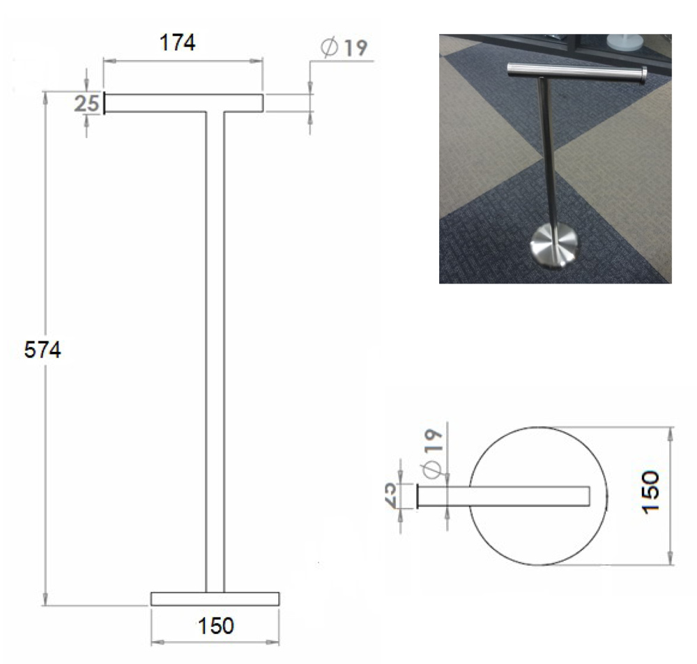 Dimensions : W x D x H 174 x 150 x 574 mm Material : Steel Finish : Chrome / Nickel / Powder Coating