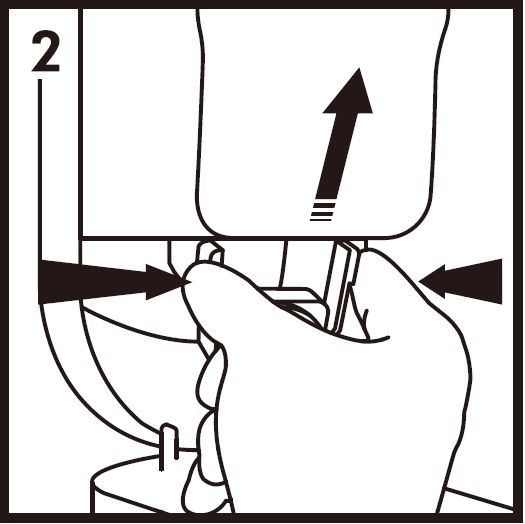 - 2. Press inward from both sides of the foam head and pull the bottle out