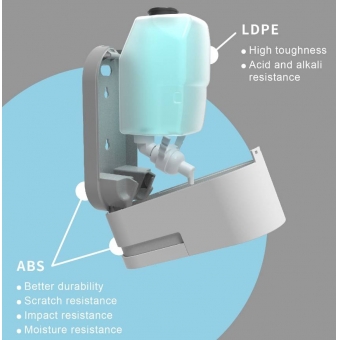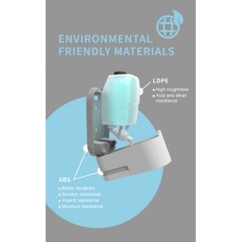 This soap dispenser for public bathrooms is designed for public use by wall mount installation on bathroom wall or on top of sink area. Each set comes with key and lock, this is for safety use in the public space. The most important is that the wall mount solution and our non-leaking pump can keep the counter top space nice and neat.
