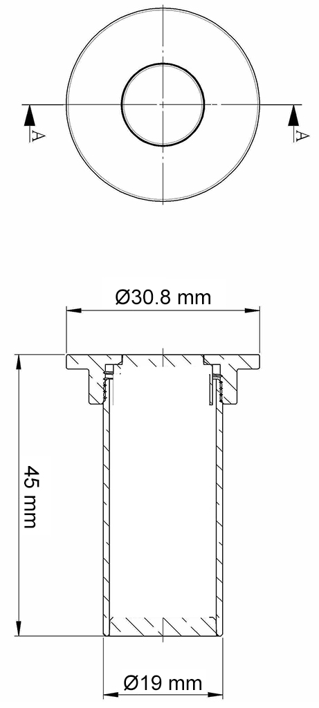 Dimension : (Height) 45mm / (Head diameter) Ø30.8mm / (Body diameter) Ø19mm